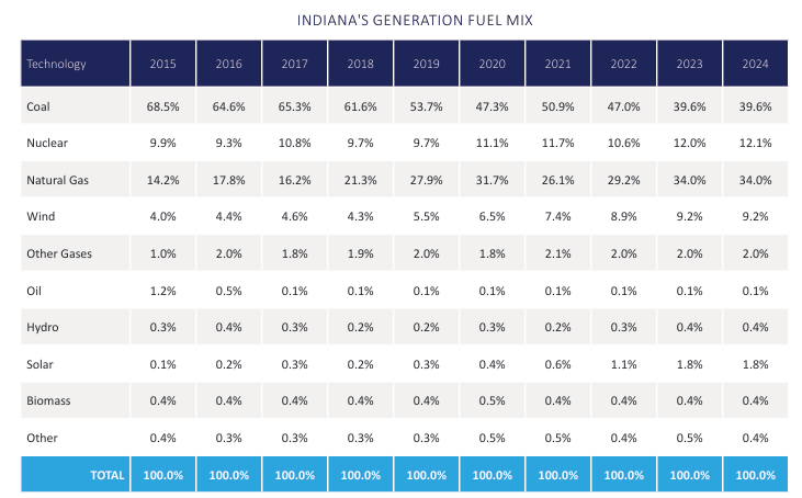 Indiana’s Generation Fuel Mix Percentages (2015 – 2024)